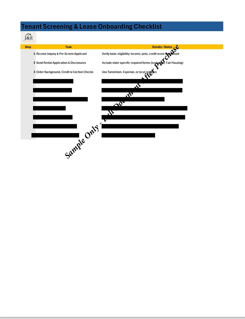 Streamline your property management workflow with this professionally crafted checklist bundle from J&E Real Estate LLC. Designed for landlords, property managers, and real estate professionals, this bundle includes: